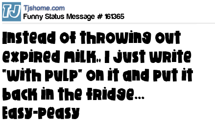 X says Instead of throwing out expired milk,, I just write "with pulp" on it and put it back in the fridge... Easy-peasy