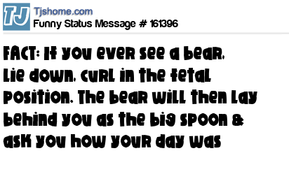 X says FACT: If you ever see a bear, lie down, curl in the fetal position. The bear will then lay behind you as the big spoon & ask you how your day was