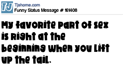 X says My favorite part of sex is right at the beginning when you lift up the tail.