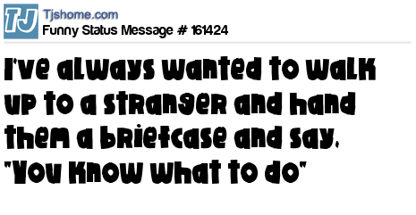 - # 96976 i've always wanted to walk to a stranger, hand them a briefcase and whisper, "You know what to do." and walk away....