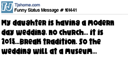 X My daughter is having a modern day wedding, no church... it is 2015...Break tradition. So the wedding will at a museum...