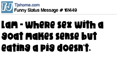 X says lam - where sex with a goat makes sense but eating a pig doesn't.