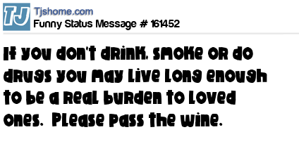 X says If you don't drink, smoke or do drugs you may live long enough to be a real burden to loved ones. Please pass the wine.