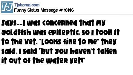 X is says....I was concerned that my goldfish was epileptic, so I took it to the Vet. "Looks fine to me" they said. I said "But you haven't taken it out of the water yet!"