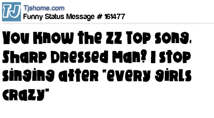 X You know the ZZ Top song, Sharp Dressed Man? I stop singing after "every girls crazy"
