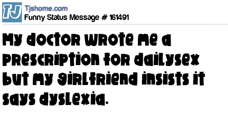 X My doctor wrote me a prescription for dailysex but my girlfriend insists it says dyslexia.