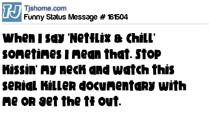X When I say 'Netflix & Chill' sometimes I mean that. Stop kissin' my neck and watch this serial killer documentary with me or get the tf out.