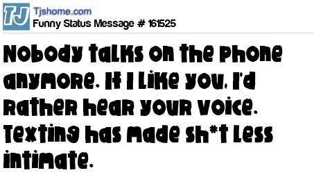 X Nobody talks on the phone anymore. If I like you, I'd rather hear your voice. Texting has made sh*t less intimate.