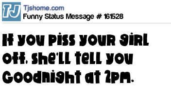 X If you piss your girl off, she'll tell you Goodnight at 2pm.