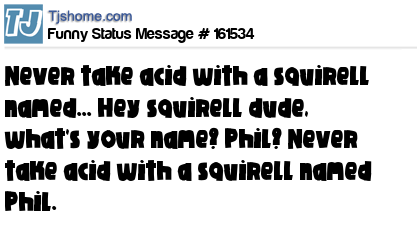 X Never take acid with a squirell named... Hey squirell dude, what's your name? Phil? Never take acid with a squirell named Phil.