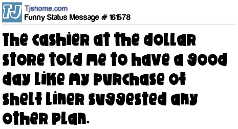 X says The cashier at the dollar store told me to have a good day like my purchase of shelf liner suggested any other plan.