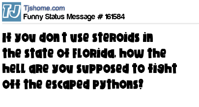 X says If you don’t use steroids in the state of Florida, how the hell are you supposed to fight off the escaped pythons?