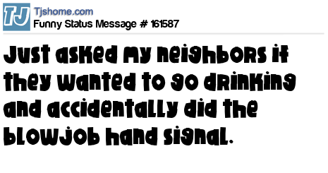 X says Just asked my neighbors if they wanted to go drinking and accidentally did the blowjob hand signal.