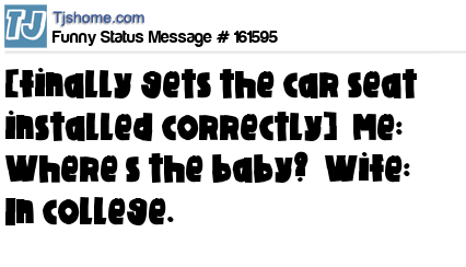 X [finally gets the car seat installed correctly] Me: Where’s the baby? Wife: In college.