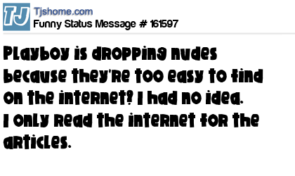 X says Playboy is dropping nudes because they're too easy to find on the internet? I had no idea. I only read the internet for the articles.
