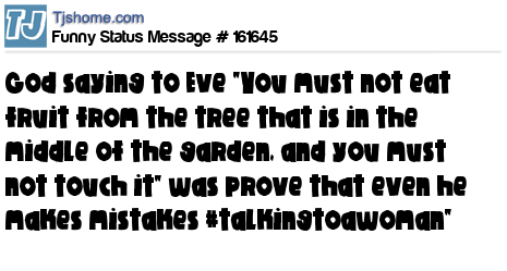 X God saying to Eve "You must not eat fruit from the tree that is in the middle of the garden, and you must not touch it" was prove that even he makes mistakes #talkingtoawoman"
