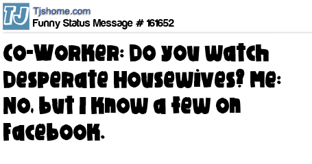 X says Co-Worker: Do you watch Desperate Housewives? Me: No, but I know a few on Facebook.