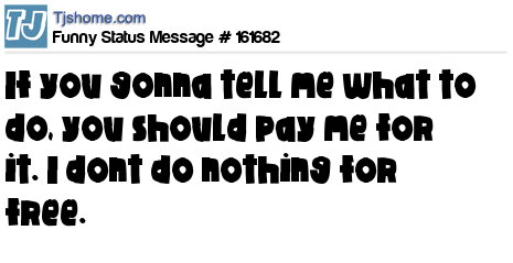 X says If you gonna tell me what to do, you should pay me for it. I dont do nothing for free.