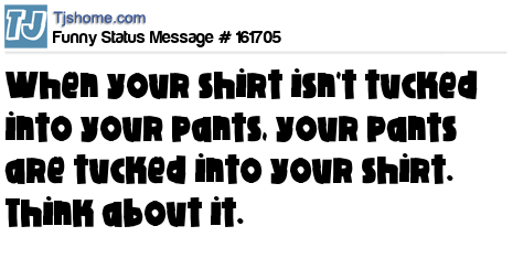 X says When your shirt isn't tucked into your pants, your pants are tucked into your shirt. Think about it.
