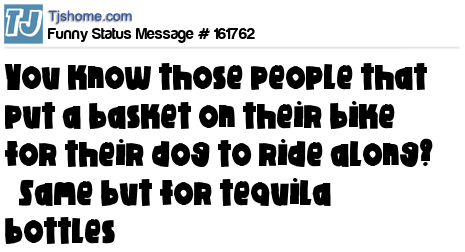 X says You know those people that put a basket on their bike for their dog to ride along? Same but for tequila bottles