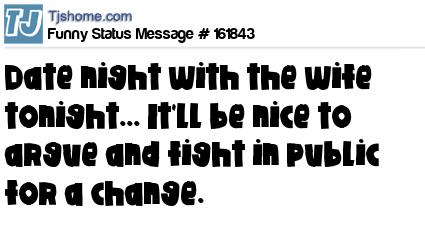 X Date night with the wife tonight... It'll be nice to argue and fight in public for a change.