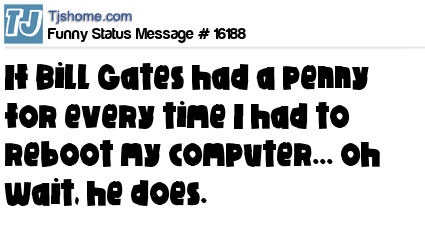 - # 18831 I swear to God, if Bill Gates had a dollar for everytime I have to reboot my computer...Oh, wait. He does. :(
