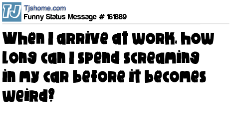 X says When I arrive at work, how long can I spend screaming in my car before it becomes weird?