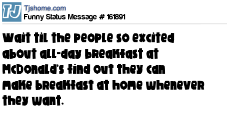 - # 162007 Wait till the people so excited about all-day breakfast at McDonald's find out they can make breakfast at home whenever they want.