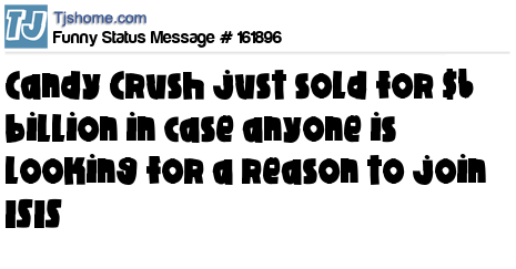 X says Candy Crush just sold for $6 billion in case anyone is looking for a reason to join ISIS