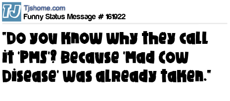 X says "Do you know why they call it 'PMS'? Because 'Mad Cow Disease' was already taken."