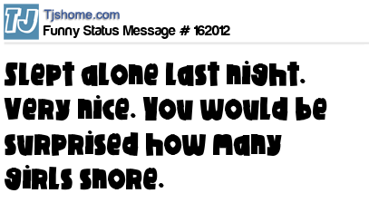 X says Slept alone last night. Very nice. You would be surprised how many girls snore.