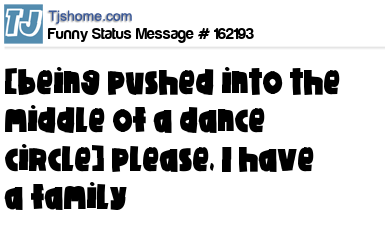 X says [being pushed into the middle of a dance circle] please, I have a family