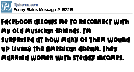 X Facebook allows me to reconnect with my old musician friends. I'm surprised at how many of them wound up living the American dream. They married women with steady incomes.