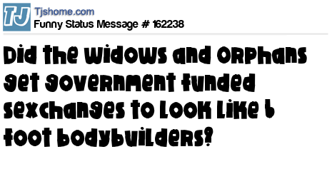 X says Did the widows and Orphans get government funded sexchanges to look like 6 foot bodybuilders?