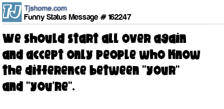 X says We should start all over again and accept only people who know the difference between ''your'' and ''you're''.