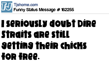 X says I seriously doubt Dire Straits are still getting their chicks for free.