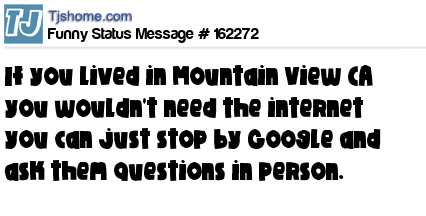 X says If you lived in Mountain View CA you wouldn't need the internet you can just stop by Google and ask them questions in person.