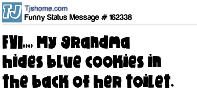 X says FYI,,,, My grandma hides blue cookies in the back of her toilet.