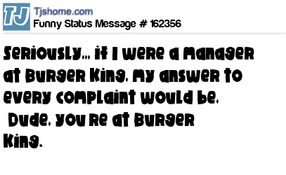 X says Seriously,,, if I were a manager at Burger King, my answer to every complaint would be, “Dude, you’re at Burger King.”