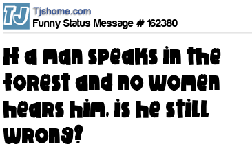 - # 137395 If a man speaks his mind in a forest, and a woman doesn't hear him, is he still wrong?