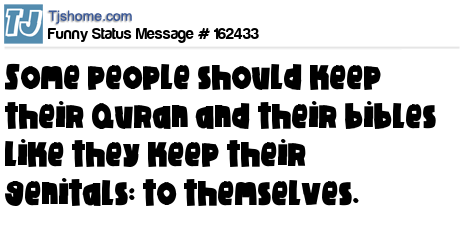 X says Some people should keep their Quran and their bibles like they keep their genitals: to themselves.