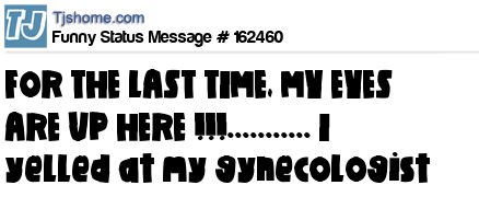 X says FOR THE LAST TIME, MY EYES ARE UP HERE !!!........... I yelled at my gynecologist