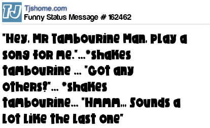 X says "Hey, Mr Tambourine Man, play a song for me."...*shakes tambourine ... "Got any others?"... *shakes tambourine... "Hmmm,,, Sounds a lot like the last one"