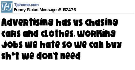 X says Advertising has us chasing cars and clothes, working jobs we hate so we can buy sh*t we don't need