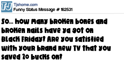 X says So... how many broken bones and broken nails have ya got on Black Friday? Are you satisfied with your brand new TV that you saved 20 bucks on?