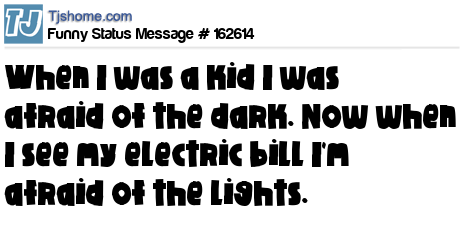 X says When I was a kid I was afraid of the dark. Now when I see my electric bill I'm afraid of the lights.