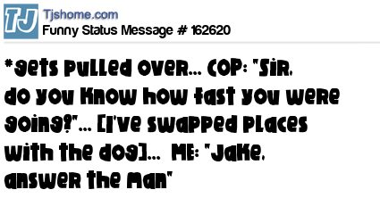 X says *gets pulled over... COP: "Sir, do you know how fast you were going?"... [I've swapped places with the dog]... ME: "Jake, answer the man"