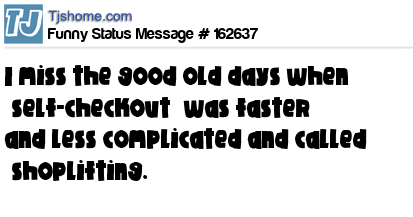 - # 162660 "I miss the good old days when “self-checkout” was faster and less complicated and called “shoplifting.”This's brought you by a cashier who is afraid of losing their job.