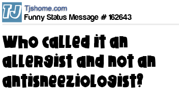 - # 208601 OK. Who decided to call it an allergist and not an antisneeziologist?