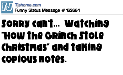 X says Sorry can't... Watching "How the Grinch Stole Christmas" and taking copious notes.